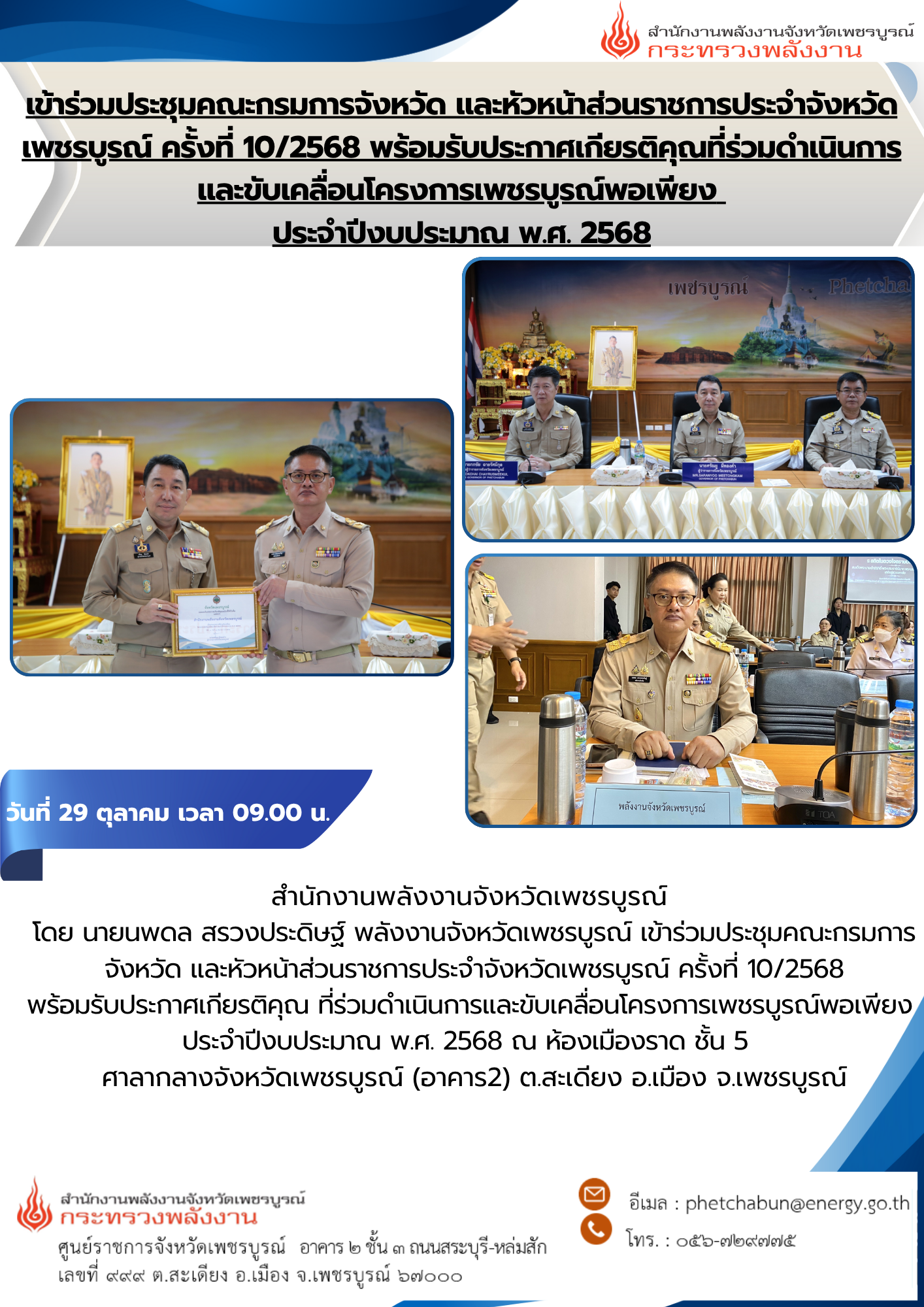 วันอังคารที่ 15 กุมภาพันธ์ 2565 สำนักงานพลังงานจังหวัดเพชรบูรณ์ นำโดย นางสาวจิตรลดา ศรีภา นักวิชาการพลังงานชำนาญการ พร้อมด้วยข้าราชการและเจ้าหน้าที่ ร่วมพิธีเปิดโครงการและออกหน่วยให้บริการประชาชน เผยแพร่ความรู้เรื่องการประหยัดพลังงานและเทคโนโลยีพลังงานทดแทน ตามโครงการหน่วยบำบัดทกุข์ บำรุงสุข สร้างรอยยิ้มให้ประชาชน ประจำปี พ.ศ. 2565 ในพื้นที่อำเภอบึงสามพัน ณ โรงเรียนวัดเขาเจริญธรรม ต.หนองแจง อ.บึงสามพัน จ.เพชรบูรณ์
